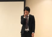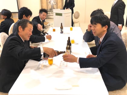 宮治さん、直立不動の姿勢で常務の話を聞いてます(*^^*)