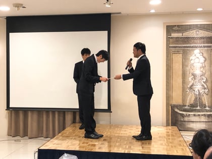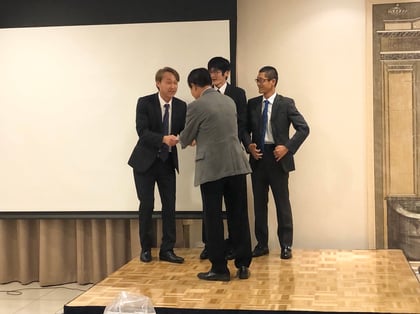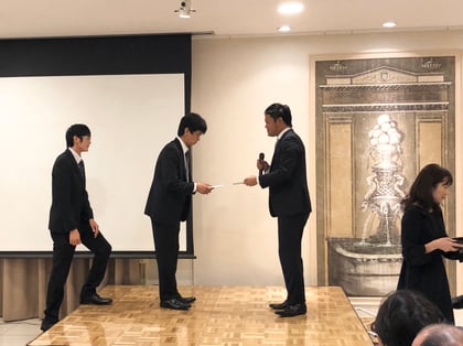 中間発表で指導書の発生枚数が少なかったEチームにチーム賞贈呈