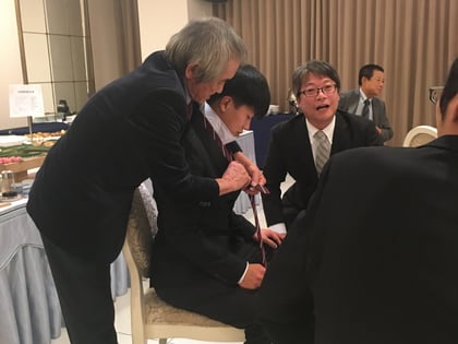 井本さんにネクタイの結び方を教えている優しい嶽下さん♪